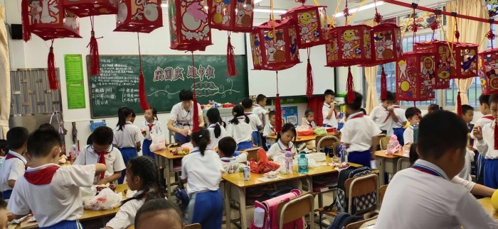 活動(dòng)前,各班主任精心籌劃,認(rèn)真準(zhǔn)備活動(dòng)?;顒?dòng)中,學(xué)校各班級(jí)班主任通過視頻、音樂、朗誦、講故事等形式,讓孩子們了解中秋節(jié)的傳統(tǒng)文化,知曉中秋節(jié)的習(xí)俗趣事。在賞花燈、猜燈謎、吃月餅和柚子等活動(dòng)的過程中,感悟團(tuán)圓、和諧的幸福,增進(jìn)同學(xué)之間的友誼,顯得其樂融融。多種多樣的活動(dòng)讓傳統(tǒng)節(jié)日、傳統(tǒng)習(xí)俗走進(jìn)課堂,走入孩子們的心里。