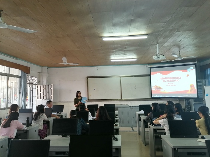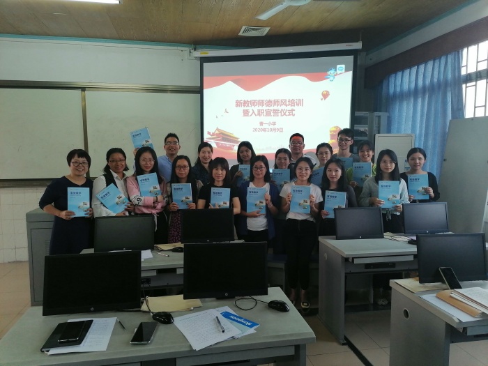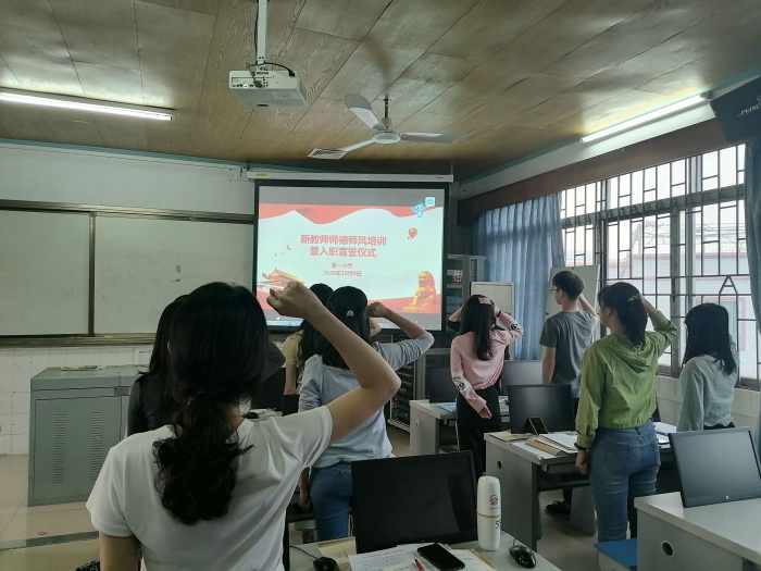 打印 |為了進一步推動學(xué)校師德師風(fēng)建設(shè)制度化、常態(tài)化、長效化, 10月9日下午,曹一小學(xué)在四樓電腦室召開全體教師會議,本次會議由古蘇嬋主任主持,會議主要內(nèi)容是對學(xué)校師德師風(fēng)建設(shè)主題教育月活動的工作總結(jié)暨新教師入職宣誓儀式活動。