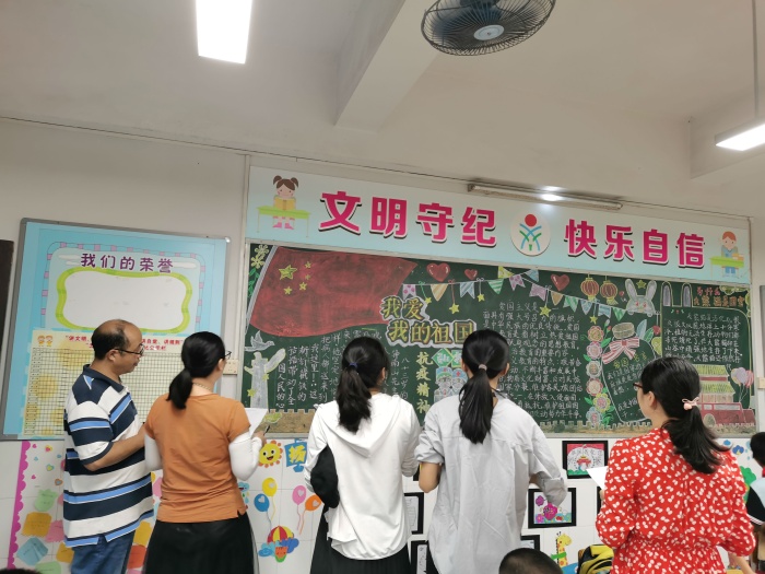 為了彰顯班級(jí)文化布置的成果,學(xué)校德育組組織級(jí)組長(zhǎng)、美術(shù)老師、少先隊(duì)輔導(dǎo)員,對(duì)各班的特色班文化布置進(jìn)行了檢查。通過一個(gè)多小時(shí)的檢查發(fā)現(xiàn),各班均能根據(jù)學(xué)生的年級(jí)年齡特點(diǎn),精心策劃,讓教室內(nèi)的每一塊墻壁、每一個(gè)角落都具有教育作用,彰顯班集體和學(xué)科特色,讓師生感覺“舒心”。最讓人驚喜的是,班主任們精心安排,班級(jí)的黑板報(bào),學(xué)習(xí)園地,都盡顯了班級(jí)文化特色,都營(yíng)造了美麗的“家”的感覺。