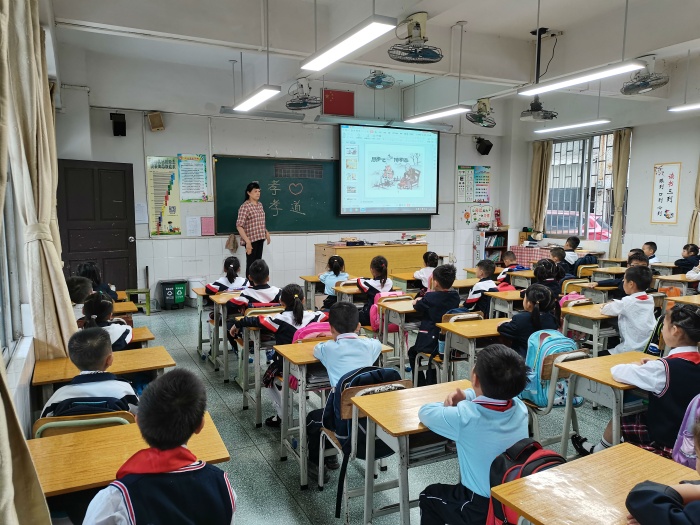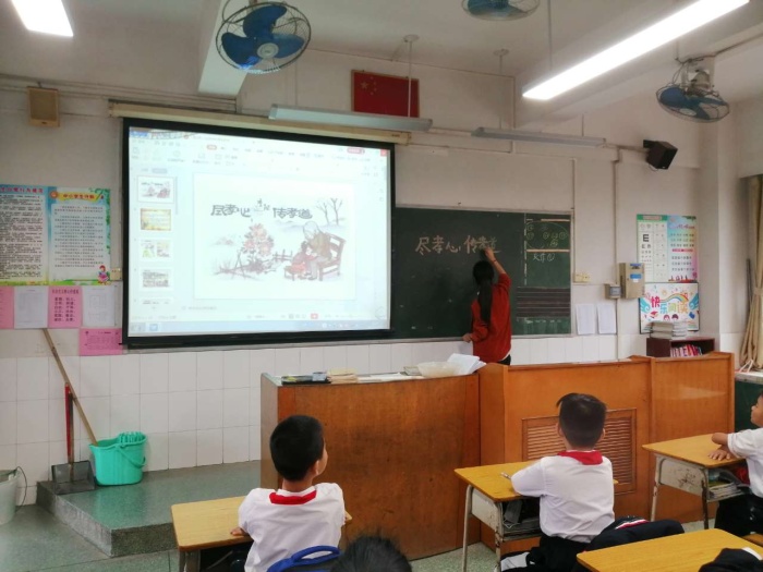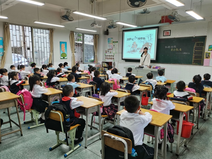 課上,老師們先給同學(xué)們講解了重陽節(jié)的多種名稱及其起源,讓同學(xué)們充分了解這個節(jié)日的特殊意義。接著,老師們通過課件介紹重陽節(jié)人們常參加的各種活動,這些活動大大豐富了老人們的精神生活,提高了對社會對長輩們的關(guān)注,給節(jié)日增添了熱鬧和喜慶的氛圍。然后,老師們著重對登高、賞菊、放風(fēng)箏、插茱萸、和菊花酒這幾種重要活動進(jìn)行詳細(xì)的解說,一個個生動有趣的神話故事賦予重陽節(jié)神秘的色彩,同學(xué)們個個都聽得津津有味。為了把敬老、愛老的種子播種在每個孩子心間。老師們還講訴了父母日常為我們做的一件件的小事,一個個動人的瞬間,一個個溫暖的眼神,體現(xiàn)了父母對子女無私的愛。每個人都會老去,爺爺奶奶的今天,就是爸爸媽媽的明天,也是我們的將來。那么,我們重陽節(jié)能為爺爺奶奶做些什么?同學(xué)們紛紛暢所欲言,說出了自己為爺爺奶奶所做的事,表達(dá)了對爺爺奶奶的愛和關(guān)心。