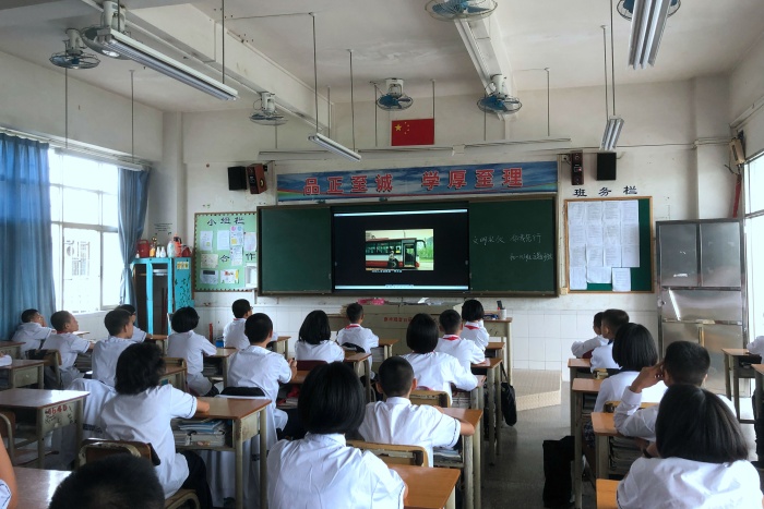第一部分,班主任黃肖宇老師給同學們展示了一些不文明的習慣、不文明的言行舉止等等,同學們紛紛對這些不文明的行為表示遺憾。隨后,黃老師通過問答的方式總結出我們身邊許多文明的習慣,也讓同學們更加深刻地認識到了文明是什么。