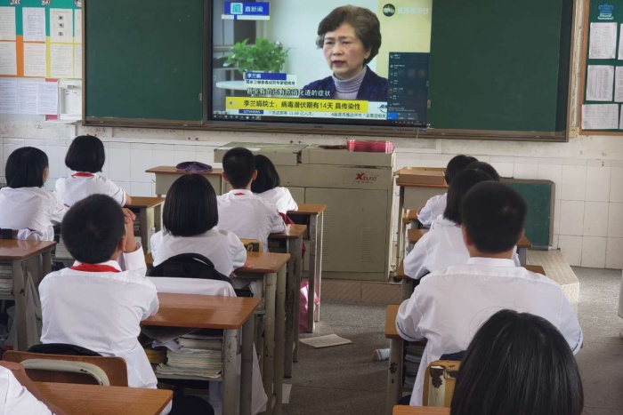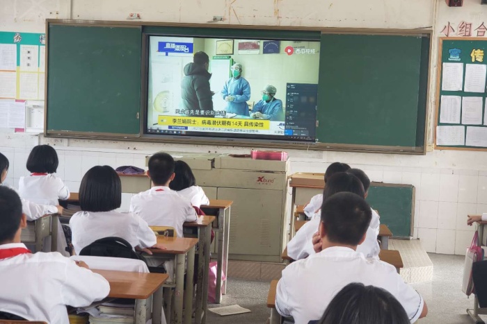 首先陳老師通過觀看視頻讓同學(xué)認識新冠肺炎的基本常識及日常生活學(xué)習(xí)中如何防疫。接著大家又觀看了視頻《共同防疫,校醫(yī)齊出招——安心圖書館》,了解到安心圖書館需要大家共同努力,學(xué)校圖書館的管理員應(yīng)該每天做好圖書館的衛(wèi)生清潔、通風(fēng)、桌椅、地板、書柜消毒等工作,營造安全清潔的公共場所。而同學(xué)們進入學(xué)校圖書館也要嚴格做好防疫措施:自覺戴好口罩、間隔一米距離就座、及時對雙手進行消毒等。最后,同學(xué)們結(jié)合視頻和自己的認識積極發(fā)言,再次明確自己去圖書館必須要做好的一些防疫行為。