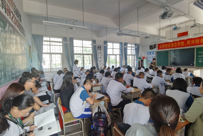 第一個(gè)環(huán)節(jié)是陳小玲老師在初三(7)班的公開(kāi)課。陳老師本次的講課內(nèi)容是議論文寫(xiě)作,首先是談話(huà)導(dǎo)入,講解議論文寫(xiě)作的重要性。接著是檢查預(yù)習(xí),學(xué)生將導(dǎo)學(xué)稿上議論文的論點(diǎn)按句式進(jìn)行分類(lèi),陳老師及時(shí)進(jìn)行評(píng)價(jià)。然后是學(xué)生對(duì)導(dǎo)學(xué)稿中的觀(guān)點(diǎn)提煉并進(jìn)行討論,最后是學(xué)生回答,陳老師進(jìn)行精準(zhǔn)點(diǎn)撥。