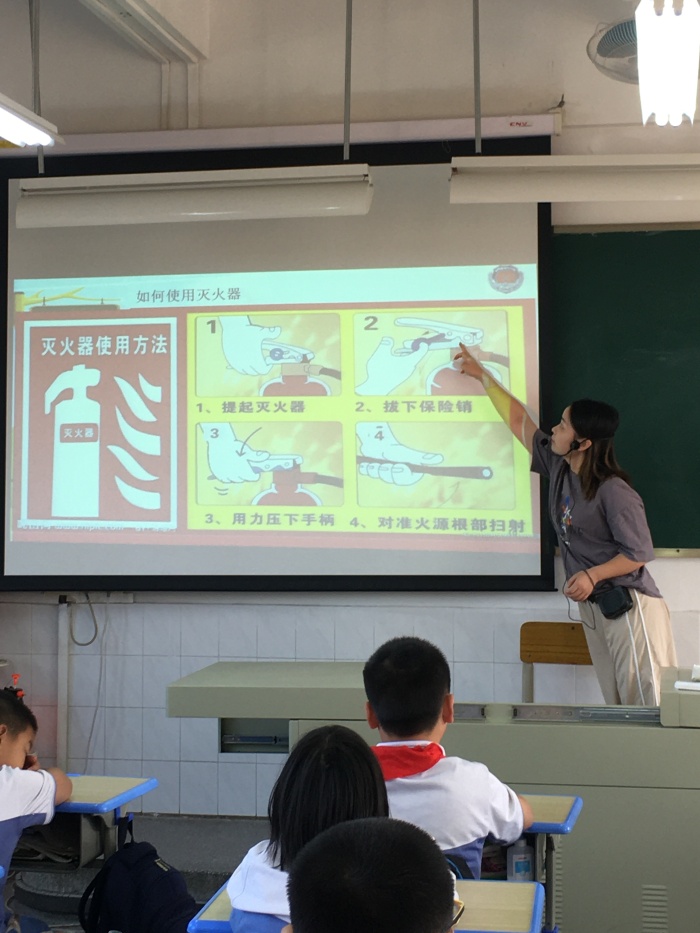 最后,班主任向?qū)W生介紹了十種火災(zāi)現(xiàn)場逃離的方法和展示如何使用滅火器,讓學生學會了在火災(zāi)中自救。