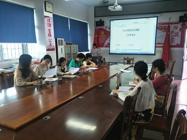 會議由課題組負責人林鳳瓊老師主持,參加會議的有劉沛昌主任和陳白蓮老師等9名研究成員。會議主要分三大流程:1、課題成員分別宣讀自己負責撰寫的那部分研究資料;2、成員們提出自己研究的困惑或其他成員提出修改意見;3、劉沛昌主任給予課題申報的意見總結。
