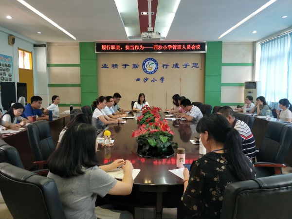 為進(jìn)一步做好學(xué)校的管理工作,提升管理效能,6月29日下午,四沙小學(xué)在會(huì)議室召開(kāi)了學(xué)校管理人員會(huì)議。全體管理人員圍繞防控新冠肺炎疫情所做的工作進(jìn)行了匯報(bào),也對(duì)期末和暑期圍繞學(xué)校雅行教育的工作進(jìn)行了構(gòu)思。