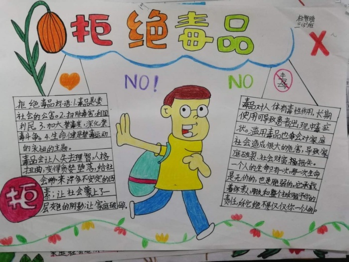橫欄小學(xué)德育處組織一、二年級(jí)學(xué)生觀看了《鐘南山告訴你》和《毒品那么遠(yuǎn)那么近》禁毒教育影片;三、四年級(jí)開展主題“健康人生 綠色無毒”主題手抄報(bào)比賽,內(nèi)容圍繞學(xué)生識(shí)毒、防毒、拒毒進(jìn)行設(shè)計(jì);五、六年級(jí)開展毒品預(yù)防教育征文活動(dòng);書法社團(tuán)學(xué)生開展主題為“健康人生,綠色無毒”的書法作品征集活動(dòng);五、六年級(jí)各班利用電腦課進(jìn)入平臺(tái)完成禁毒知識(shí)的學(xué)習(xí)及知識(shí)競(jìng)賽。