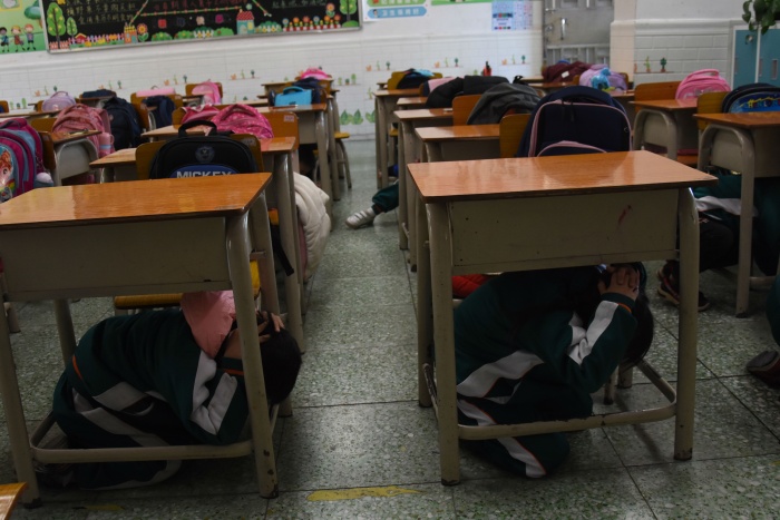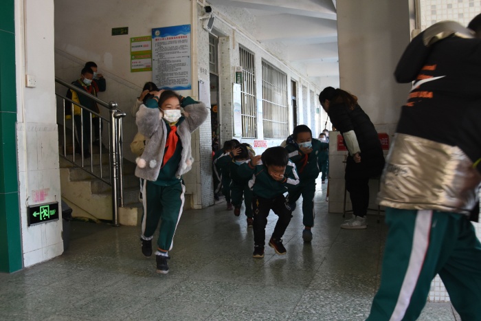 一聲急促的警報(bào)聲拉開了“安全疏散演練”活動帷幕,聽到安全避險(xiǎn)警報(bào)聲,各位老師立即到達(dá)指定崗位,正在上課的學(xué)生聽到地震預(yù)警后,在班主任的指導(dǎo)下迅速鉆進(jìn)課桌下進(jìn)行緊急避險(xiǎn)。震波過后,隨著一陣尖銳而又急促的緊急疏散聲響起,學(xué)生在老師的指揮下,雙手抱頭、彎腰,迅速、有序、安全地從教室向操場轉(zhuǎn)移。演練期間,老師和同學(xué)們認(rèn)真對待,組織有序,無擁擠、推搡、打鬧現(xiàn)象,整個演練過程緊張而不慌亂。