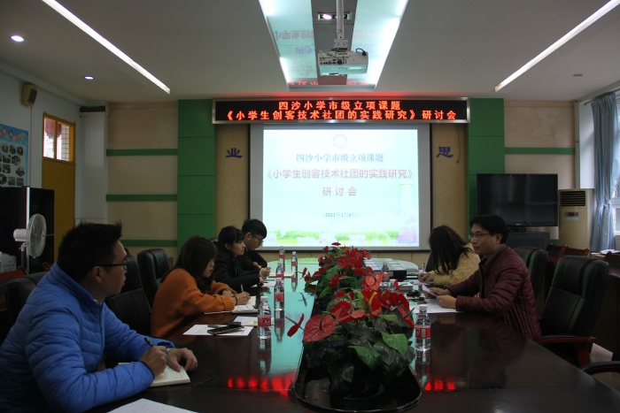 打印 |2021年1月6日上午,四沙小學(xué)市級(jí)立項(xiàng)課題《小學(xué)生創(chuàng)客技術(shù)社團(tuán)的實(shí)踐研究》研討會(huì)在學(xué)校會(huì)議室召開。研討會(huì)由課題主持人盧福棠副校長主持。