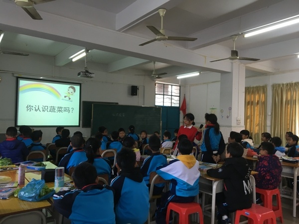 首先,由第二小學朱錫梅老師和五(3)班的孩子們展示了一場精彩紛呈的融合課。俗話說:真知來源于生活,實踐產(chǎn)生知識。為了讓孩子們愛上吃蔬菜,開啟健康人生路,本次綜合實踐課以《認識蔬菜》為主題,朱老師通過猜謎語、搶答游戲、小組合作、繪畫蔬菜等形式多樣的活動,把課堂還給孩子們,帶領孩子們走進蔬菜王國,讓孩子們懂得了四季常見蔬菜的種類及營養(yǎng),同時提高了孩子們的小組、匯報的能力。