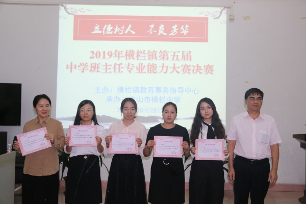 10月28日下午,橫欄鎮(zhèn)第五屆“立德樹人 不負芳華”中學(xué)班主任專業(yè)能力大賽決賽在橫欄中學(xué)階梯室舉行?;顒又荚诓粩嗉訌姲嘀魅侮犖榻ㄔO(shè),提高班主任教師的專業(yè)技能與育人素質(zhì)。橫欄中學(xué)的何美慧、麻金紅、游晗昕、萬小雙、王欣等五位老師榮獲一等獎。