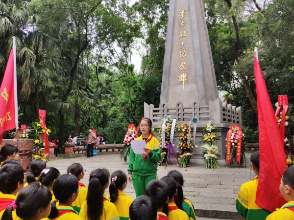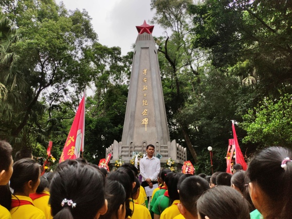 為悼念革命烈士,緬懷先烈的豐功偉績,中山市橫欄港源學(xué)校師生代表共50人,在學(xué)校德育副校長鄧韶洲、德育主任姚永、大隊輔導(dǎo)員張勇老師的組織帶領(lǐng)下,4月10日上午來到了小欖鳳山公園,開展了“緬懷先烈遺志,傳承革命精神”活動。