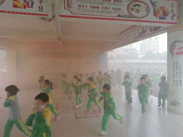 隨著警報(bào)聲的響起,巨大的濃煙掩蓋教學(xué)樓,橫欄港源學(xué)校消防演習(xí)正式開始了。老師們迅速就位,同學(xué)們按事前安排好的路線,低頭、用濕毛巾或濕紙巾捂嘴,隊(duì)伍穿越滾滾濃煙,撤離到籃球場(chǎng)。當(dāng)來到安全地帶后,班主任迅速整理隊(duì)伍,接著,由張勇主任向全體師生講解了對(duì)于避免校園火災(zāi)的基本要求,如何及時(shí)準(zhǔn)確地報(bào)警,在遭遇火災(zāi)時(shí)有效處理辦法等消防知識(shí)。