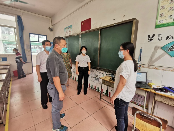 林達(dá)光一行從臨時(shí)隔離室、師生洗手池、學(xué)校餐廳、廚房、課室、器材室、保健室、隔離室等地方對(duì)學(xué)校疫情防控工作和復(fù)學(xué)準(zhǔn)備工作進(jìn)行現(xiàn)場(chǎng)督導(dǎo)檢查,并提出進(jìn)一步完善的意見(jiàn)和建議。調(diào)研中,在二(8)班教室現(xiàn)場(chǎng)詢問(wèn)了該班主任關(guān)于疫情應(yīng)急處理的情況,在餐廳細(xì)心檢查了廚房人員的衛(wèi)生狀況,在保健室還向?qū)W校保健醫(yī)生詢問(wèn)了各種器材的使用情況。林達(dá)光肯定學(xué)校疫情防控和復(fù)學(xué)工作取得成績(jī)的同時(shí),要求學(xué)校進(jìn)一步強(qiáng)化對(duì)疫情嚴(yán)峻性的認(rèn)識(shí),堅(jiān)決貫徹落實(shí)市鎮(zhèn)關(guān)于疫情防控工作的有關(guān)要求,將疫情防控工作抓緊抓細(xì)抓實(shí);進(jìn)一步完善疫情防控各項(xiàng)工作預(yù)案,確保防控工作落地落實(shí)落細(xì),為開(kāi)學(xué)后應(yīng)急處置工作做好充分準(zhǔn)備。他強(qiáng)調(diào):1.學(xué)校要加強(qiáng)培訓(xùn),每位教師都要熟練這套應(yīng)急流程;2.各種器材要規(guī)范使用;3.開(kāi)課之前,教師之間互相學(xué)習(xí),各項(xiàng)工作落到實(shí)處,齊心協(xié)力,打贏防疫攻堅(jiān)戰(zhàn)。