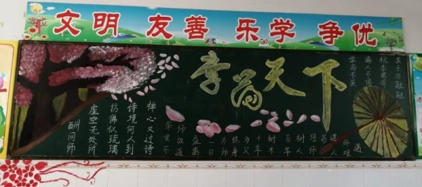 自通知下發(fā)之日起,各班班主任都積極響應(yīng),克服工作忙、時(shí)間緊等困難,帶領(lǐng)學(xué)生精心設(shè)計(jì)。各班學(xué)生在老師的帶領(lǐng)下紛紛自主查找資料,積極參與,設(shè)計(jì)版面,畫(huà)圖寫(xiě)字,僅用了三、四天時(shí)間,一期主題鮮明、圖文并茂、布局美觀的黑板就報(bào)展現(xiàn)在廣大師生面前。
