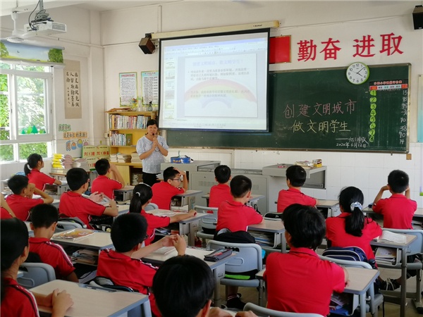 班會(huì)課上,各班主任們進(jìn)行創(chuàng)建文明城市知識(shí)宣傳,倡導(dǎo)學(xué)生們從自己做起,從小事做起,從身邊做起,爭(zhēng)當(dāng)文明小市民;通過(guò)PPT課件,讓學(xué)生懂得亂闖紅燈、亂吐亂扔、亂寫亂畫、亂掛亂貼是影響環(huán)境衛(wèi)生的不文明行為,希望能通過(guò)孩子對(duì)不文明行為的勸導(dǎo),潛移默化地影響大人及家庭的文明行為,從而促進(jìn)城市文明創(chuàng)建活動(dòng)的開展。