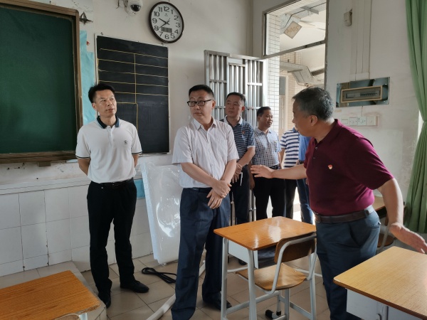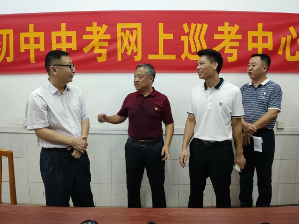 首先,徐寧軍書記仔細(xì)詢問了中考期間學(xué)??紕?wù)安排、學(xué)生考前學(xué)習(xí)情況等,表達(dá)對中考工作的關(guān)心,對教師們辛勤工作表示慰問。隨后,盧新泉校長從考場的布置、考場設(shè)備實(shí)施保障、考生數(shù)量等方面向徐寧軍書記一行匯報(bào)了南頭鎮(zhèn)初級中學(xué)中考準(zhǔn)備工作的詳細(xì)情況。