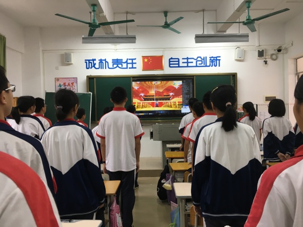首先,舉行莊嚴的升旗儀式,全校師生奏唱國歌,集體背誦二十四字社會主義核心價值觀和學(xué)校校訓(xùn)。接著進行主題教育,首先讓學(xué)生認識生命不僅屬于自己,也屬于家庭。父母含辛茹苦地孕育我們,我們承載著家庭、父母的希望,我們一出生,家人就開始為我們付出辛勤的勞動。所以,我們更應(yīng)該珍惜自己的生命!接著圍繞“何謂校園欺凌?”、 “校園欺凌的特點 ”、“校園欺凌的危害”、“如何應(yīng)對欺凌?”展開學(xué)習(xí),并學(xué)習(xí)了《廣東省最新的校園欺凌處分條例》 ,讓學(xué)生認識了校園欺凌的種類和事件的處置。并列舉了全國各地近期以來發(fā)生的大量鮮活案例,深入淺出地分析了校園欺凌事件產(chǎn)生的原因及危害后果。并結(jié)合個別同學(xué)身上出現(xiàn)的不良行為進行剖析,從而告誡學(xué)生,對校園欺凌事件要采取零容忍的態(tài)度,不但自身不能觸犯欺凌行為,還要懂得保護自己,采取正當(dāng)方式和欺凌行為作斗爭。