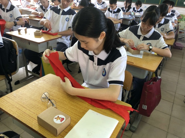 最后,同學輕輕摘下自己的紅領(lǐng)巾,折疊好,統(tǒng)一放進盒子里珍藏,多年以后翻出來查看,是多么美好的回憶??!