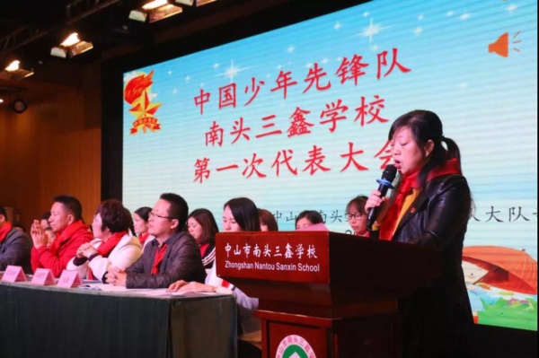12月9日上午,中山市南頭三鑫學(xué)校以“爭(zhēng)做新時(shí)代好隊(duì)員”為主題,在學(xué)校報(bào)告廳隆重召開了中國(guó)少年先鋒隊(duì)中山市南頭三鑫學(xué)校2019年第一次代表大會(huì)。出席本次大會(huì)的有南頭鎮(zhèn)團(tuán)委副書記薛棉,鎮(zhèn)少工委總輔導(dǎo)員郭淑娟,南頭三鑫學(xué)校邱海濤校長(zhǎng)、曾憲松副校長(zhǎng)、華曉芳副校長(zhǎng)、陳爾琪副校長(zhǎng)、德育專干張君、少先隊(duì)大隊(duì)輔導(dǎo)員李曉宇、副大隊(duì)輔導(dǎo)員林映彤、一至六年級(jí)各年段總輔導(dǎo)員、優(yōu)秀中隊(duì)輔導(dǎo)員代表和各中隊(duì)優(yōu)秀少先隊(duì)員代表,共計(jì)145名代表參加了本次會(huì)議。