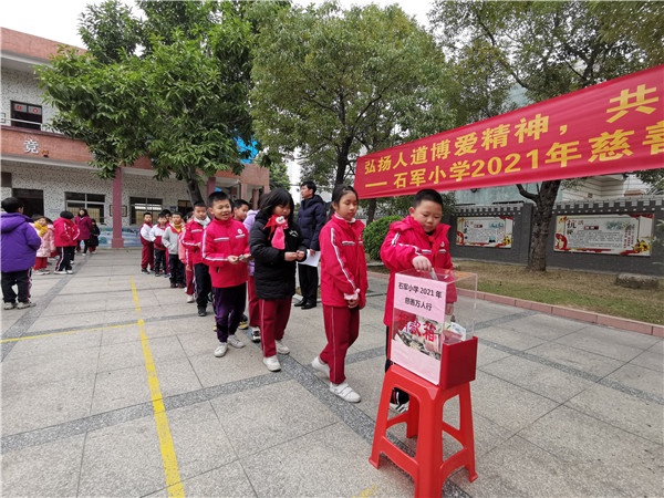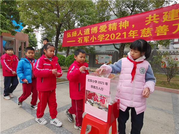 慈善事業(yè)是一項(xiàng)重大的社會(huì)公益事業(yè),它需要全社會(huì)的廣泛參與,同樣也需要每一位師生共同踐行。為了響應(yīng)廣東省政府的號(hào)召,積極參與2021年“廣東扶貧濟(jì)困”活動(dòng),為關(guān)愛貧困人口獻(xiàn)出自己一份微薄力量,2021年1月8日,石軍小學(xué)開展“弘揚(yáng)人道博愛精神 共建共享美好家園”慈善萬人行捐款活動(dòng)。