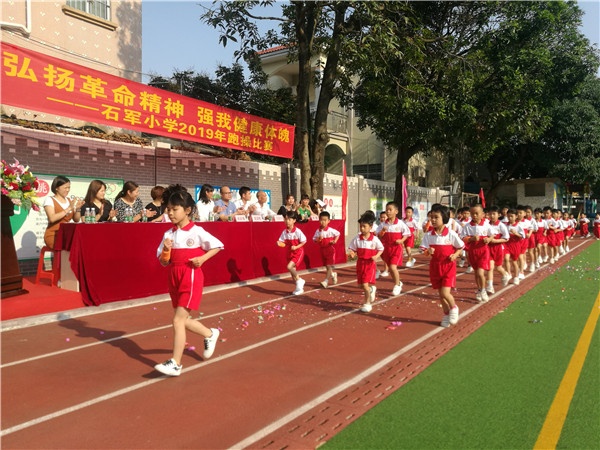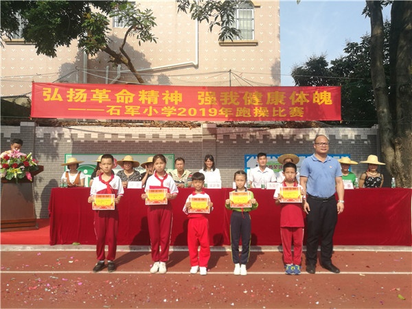 為激發(fā)學(xué)生運(yùn)動(dòng)興趣,促進(jìn)學(xué)生健康成長(zhǎng),從而樹立學(xué)生團(tuán)結(jié)合作、競(jìng)爭(zhēng)圖強(qiáng)的意識(shí),并弘揚(yáng)革命老區(qū)不怕苦、不怕累,堅(jiān)韌拼搏的精神。2019年4月23日,黃圃鎮(zhèn)石軍小學(xué)隆重舉辦了一次以“弘揚(yáng)革命精神,強(qiáng)我健康體魄”為主題的跑操比賽活動(dòng)。