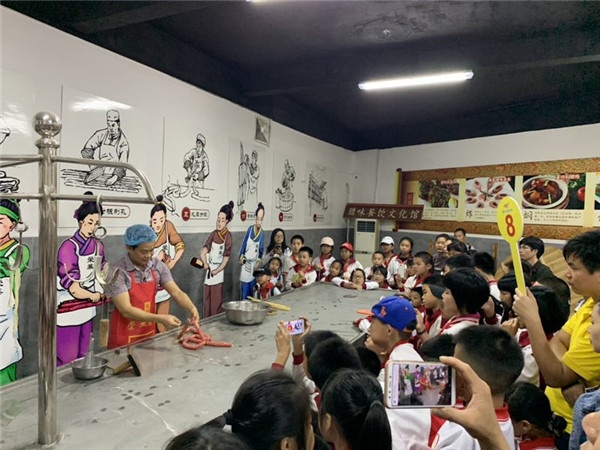 29日一早,全體學生在學校的領導和安排下,在老師、導游和家長的陪同下,坐上了事先安排好的車輛,懷著愉快和期盼的心情陸陸續(xù)續(xù)地開往研學活動的目的地。首先來到活動的第一站——黃圃鎮(zhèn)臘味文化館。在文化館內(nèi),學生們參觀了關于臘味傳統(tǒng)文化發(fā)展和傳承的歷史資料、圖片和視頻,還觀看了臘味臘腸制作的具體過程。