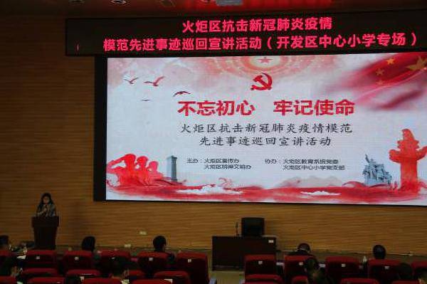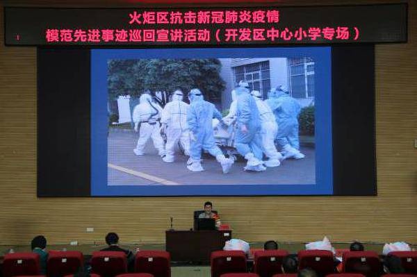 為大力宣傳開發(fā)區(qū)疫情防控斗爭中涌現(xiàn)出的“抗疫先鋒”光榮事跡,弘揚主動擔當?shù)暮迫徽龤夂蜔o私奉獻的高尚精神,厚植廣大師生愛國主義和家國情懷,6月24日上午9點,開發(fā)區(qū)抗擊新冠肺炎疫情模范先進事例宣講活動在開發(fā)區(qū)中心小學學術報告廳開展,區(qū)宣傳辦韓永、區(qū)教育事務指導中心副主任關影紅、開發(fā)區(qū)中心小學副校長劉剛毅、副校長孫寧、全體黨員教師、學生代表以及區(qū)內(nèi)各兄弟學校教師代表共計有130余人參加此次活動。