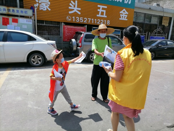 7月11號(hào)上午,該校黨員志愿者服務(wù)隊(duì)、親子義工服務(wù)隊(duì)一行,在唐秉晶校長(zhǎng)的帶領(lǐng)下,在周邊街道派發(fā)“全國(guó)文明城市倡議書”宣傳單頁。志愿者們頂著烈日,揮灑汗水,發(fā)揚(yáng)了一不怕苦,二不怕累的精神,認(rèn)真詳細(xì)地講解宣傳內(nèi)容,把文明和公益的精神傳遞給更多的市民。