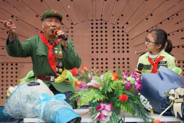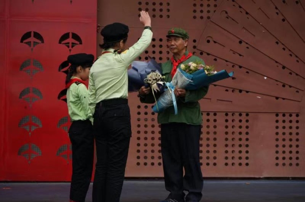 最后,學(xué)校領(lǐng)袖團(tuán)的同學(xué)代表對何爺爺進(jìn)行了簡單的采訪:1、何爺爺對我們少先隊(duì)員有什么期望嗎?2、現(xiàn)在的中國軍事與以前相比發(fā)生了哪些變化?3、當(dāng)年打戰(zhàn)時,你們的生活條件艱苦嗎?何爺爺對以上三個問題進(jìn)行了具體詳細(xì)的回答,并給予同學(xué)們鼓勵,希望同學(xué)們珍惜今天來之不易的幸福生活,好好學(xué)習(xí)天天向上。