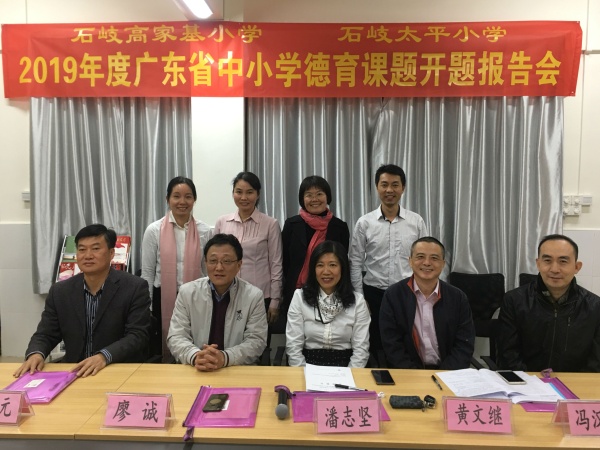12月6日下午,石岐太平小學(xué)和高家基小學(xué)聯(lián)合在高家基小學(xué)煙墩校區(qū)一號(hào)樓三樓黨員活動(dòng)室舉行了2019年度廣東省中小學(xué)德育課題開題報(bào)告會(huì)。出席報(bào)告會(huì)的有中山市教育工委副書記廖誠(chéng),市中小學(xué)德育中心副主任、石岐區(qū)教育事務(wù)指導(dǎo)中心德育專干潘志堅(jiān),三角鎮(zhèn)蟠龍小學(xué)段子元校長(zhǎng),廣東省名班主任工作室主持人黃文繼老師,石岐太平小學(xué)鄭結(jié)霞校長(zhǎng)引領(lǐng)的太平小學(xué)課題組成員,石岐高家基小學(xué)黃榮勝校長(zhǎng)引領(lǐng)的高家基小學(xué)課題組成員以及石岐實(shí)驗(yàn)小學(xué)馮漢文校長(zhǎng)。