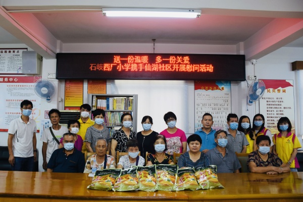 學校送溫暖,真情暖心田。2020年7月8日上午,石岐西廠小學攜手仙湖社區(qū)在該社區(qū)活動中心開展了慰問活動,為仙湖社區(qū)的貧困家庭送上牛奶、燕麥片等慰問品,也送去學校的溫暖關(guān)懷及美好祝福。