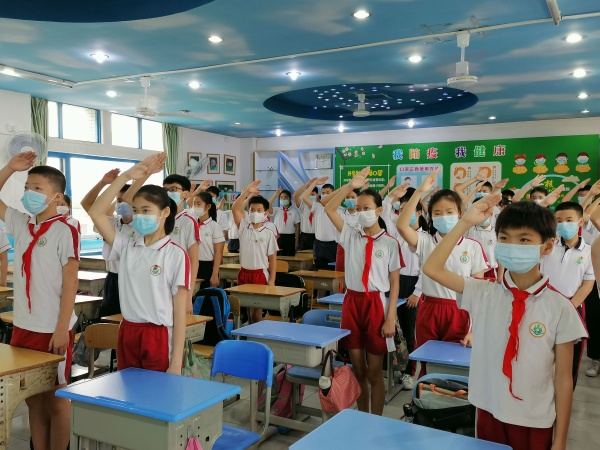 第一節(jié)課是升旗儀式和校會(huì)時(shí)間。在校會(huì)時(shí)間按照市教體局要求全體同學(xué)認(rèn)真收看《天使歸來(lái),英雄開(kāi)講》視頻。第二節(jié)課由正副班主任負(fù)責(zé)。讓學(xué)生們熟悉一日常規(guī)和閉環(huán)管理路線。在老師的耐心引導(dǎo)下,孩子們逐漸熟悉了新的行程。第三節(jié)課開(kāi)始按班級(jí)課程表進(jìn)行,分享在家學(xué)習(xí)趣事,或復(fù)習(xí)線上學(xué)習(xí)內(nèi)容等。
