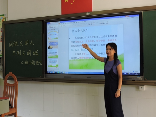 首先,學(xué)校以國(guó)旗下講話的形式向全校老師和同學(xué)發(fā)起了“同做文明人,共創(chuàng)文明城”的倡議。四(2)班曹可欣作為學(xué)生代表,激情洋溢地闡述了創(chuàng)建文明城市和文明校園的重要性和必要性,講述了小學(xué)生如何從日常的衣著、言談舉止、儀態(tài)表情等方面學(xué)習(xí)做一個(gè)文明有禮、自信大方的小學(xué)生。其次,學(xué)校在各班級(jí)開(kāi)展“學(xué)習(xí)文明禮儀,爭(zhēng)做文明學(xué)生”的主題班會(huì)活動(dòng),從多個(gè)方面向?qū)W生展示文明禮儀的具體表現(xiàn),號(hào)召學(xué)生從自身做起,從細(xì)節(jié)做起。比如,與人和睦,和同學(xué)相互有禮有節(jié);與人和諧,見(jiàn)到老師主動(dòng)問(wèn)好,“謝謝”“對(duì)不起”“請(qǐng)”等文明語(yǔ)言常放嘴邊;與人友善,面帶微笑,做文明言行的自覺(jué)實(shí)踐者。最后,學(xué)校以班級(jí)為單位評(píng)選了“星級(jí)好少年”,“愛(ài)國(guó)”“文明”“誠(chéng)信”“友善”四枚印章是其組成部分。評(píng)選上的同學(xué)在全班同學(xué)的注目和掌聲中走向講臺(tái)、戴上印章,帶著一份內(nèi)在的自信和滿足,帶著一份同伴的信任和肯定。他們將是班級(jí)和學(xué)校行走的文明之風(fēng)、盛開(kāi)的文明之花,在校園里散播著文明的馨香之氣。