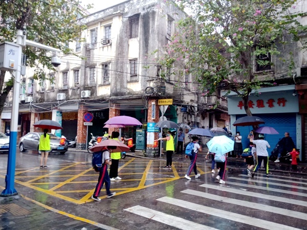 開學第一天,有一份愛叫作“護?!?。這樸實的畫面是濃濃的愛、是恬淡的詩,構(gòu)成開學第一天石岐高家基小學雨中的風景。學校護校隊用他們的實際行動,為孩子們上下學保駕護航,得到家長和學校的肯定。