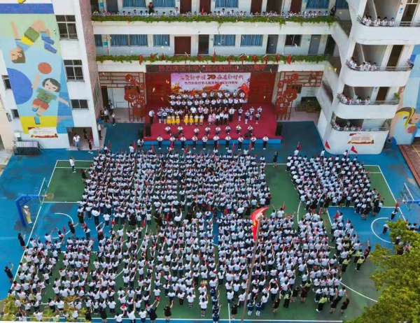 儀式上,黃麗儀校長進(jìn)行了慷慨激昂的講話,她激勵同學(xué)們要勇?lián)率姑?,做堅定忠誠的愛國者、志向遠(yuǎn)大的逐夢人、求真明理的棟梁材、以更加開闊的胸襟和視野在實現(xiàn)理想夢的生動實踐中放飛夢想,在砥礪奮進(jìn)的青春詩行里綻放絢麗的時代風(fēng)采。之后,師生、家長共同上臺,通過朗誦、歌唱、舞蹈的形式,表達(dá)了對祖國的熱愛之情。最后,一千多名師生揮舞國旗、共同唱響《歌唱祖國》將整個活動推向最高潮,校園里如同一片“紅色海洋”,洋溢著滿滿的愛國情懷,仙小全體師生向祖國母親獻(xiàn)禮,共同祝福祖國繁榮昌盛!