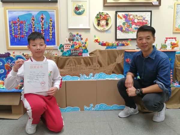 石岐第一小學是中山市版畫特色學校,非常重視學生的藝術教育,為了本次比賽,美術科組長劉杰雄老師從作品構思、表達方式、材料選擇到最后的展覽方式,每個環(huán)節(jié)都對展覽的作品進行了輔導,使得幾幅作品最后呈現(xiàn)出來的效果非常大氣,做工精美,經(jīng)過層層篩選,獲得評委們的一致贊賞。