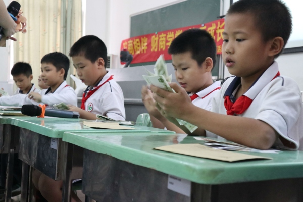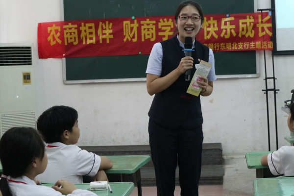 10月23日下午,中山農(nóng)商銀行東明北支行湯耀玲行長和她的同事一行5人來到石岐太平小學(xué)開展了一節(jié)生動有趣的“財(cái)商學(xué)堂小當(dāng)家”的實(shí)踐活動。