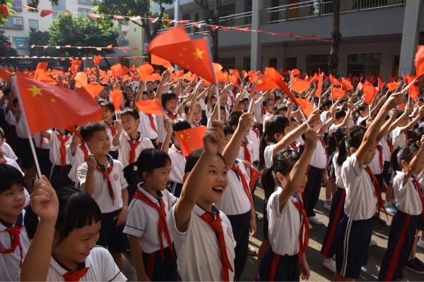 升旗禮畢,在鮮艷的國(guó)旗下,學(xué)校領(lǐng)導(dǎo)發(fā)表了慷慨激昂的致辭。楊翠萍校長(zhǎng)深情地回顧了偉大祖國(guó)的發(fā)展歷程和取得的巨大成就,歐玉璇副校長(zhǎng)向同學(xué)們闡述了作為一名小學(xué)生應(yīng)盡的責(zé)任和義務(wù)。同學(xué)們深深地感受到:應(yīng)當(dāng)在這個(gè)日新月異、飛速發(fā)展的社會(huì)中,努力向上,頑強(qiáng)拼搏,從現(xiàn)在做起,從自我做起,為祖國(guó)的繁榮昌盛貢獻(xiàn)自己的一份力量,爭(zhēng)做擔(dān)負(fù)民族復(fù)興大任的時(shí)代新人。