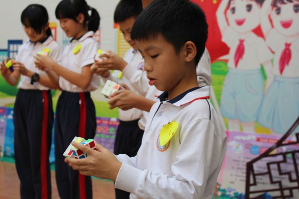 在閉幕式上,梁炳根校長對孩子們的創(chuàng)造熱情給予了鼓勵,充分肯定這一年的科學(xué)教育工作。在這一年里,孩子們樂于想象、勇于創(chuàng)新,用自己的思維火花換來了豐厚的收獲。學(xué)校分別對在科技活動中表現(xiàn)突出的創(chuàng)意學(xué)生、創(chuàng)意班級、創(chuàng)意教師和科創(chuàng)之星做了表彰和獎勵。緊接著,魔方小高手們帶來了一場精彩的競技秀,贏得了同學(xué)們的陣陣掌聲。在全校師生熱烈的倒數(shù)聲中,二十只飛魚號飛機(jī)齊刷刷地飛向天空,夢想和熱情瞬時釋放!萬眾期待的科技體驗(yàn)活動正式開始了!