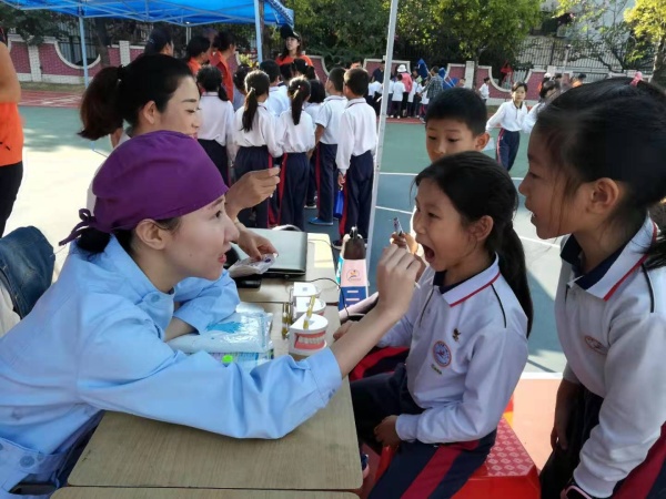 寬闊的操場兩側(cè),整齊的地陳列著各個科學(xué)體驗(yàn)攤位。一班一特色,全校19個班級的體驗(yàn)主題各不相同,由家長擔(dān)任講師。一(3)班的家長帶領(lǐng)孩子們認(rèn)識人體器官;三(1)班的家長正和孩子們普及垃圾分類的知識;四(3)班的家長則讓孩子們在制造干冰的快樂中了解干冰的原理……這次體驗(yàn)活動還得到了政府工作部門和社會科技公司的支持。中山市科學(xué)館把昆蟲標(biāo)本搬到石岐第一城小學(xué),流動科學(xué)館讓孩子們連連稱奇;中山市市場監(jiān)督管理局把食品安全帶進(jìn)校園,讓孩子們在輕松的互動中關(guān)注自己每天的飲食安全。華工啟明星有限公司、樂貝塔機(jī)器人公司、玖印科技有限公司分別向孩子們展示了最前沿的科學(xué)技術(shù)。孩子們游走在琳瑯滿目的展示攤位中,收獲了知識也收獲的快樂。