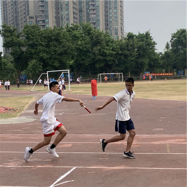 首先舉行10X50米男女接力賽,運動員在50米跑道間奮起拼搏,賽場上運動員奮力奔跑著,內(nèi)心只有一個念頭:沖!為學(xué)校爭光!場外不時傳來尖叫與掌聲。