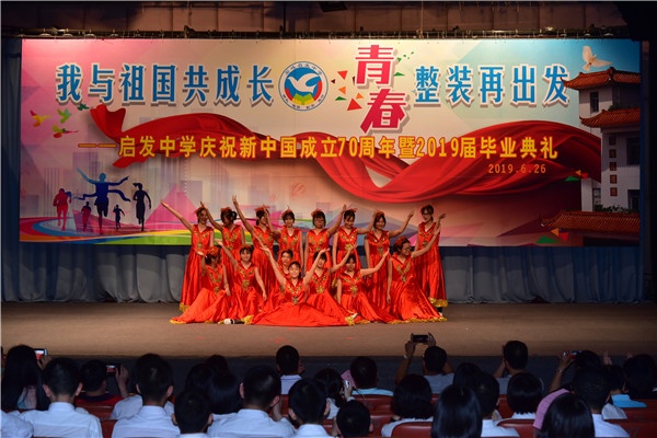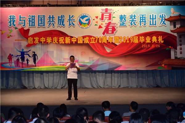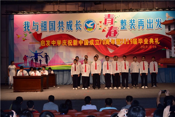 6月26日下午,啟發(fā)中學在石岐影劇院隆重舉行“我與祖國共成長,青春整裝再出發(fā)”2019屆啟發(fā)中學初三學生畢業(yè)典禮。參加此次畢業(yè)典禮的有啟發(fā)中學全體行政、初三級的全體師生、家長和部分學校家委。