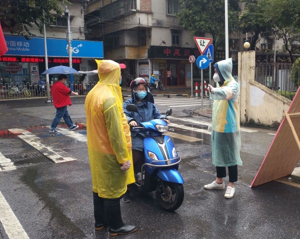 戴著口罩的臉上,雖然看不到表情,但是每個(gè)人的眼睛里都透出溫暖而堅(jiān)定的目光!“先生您好,請(qǐng)把車輛停一下配合我們測(cè)量體溫”“現(xiàn)在是疫情防控的關(guān)鍵時(shí)期,請(qǐng)您注意少出門,回家后記得勤洗手…… ”他們禮貌地請(qǐng)來往的居民出示身份證,耐心地指導(dǎo)居民填寫登記表上的每一欄內(nèi)容。在協(xié)助社區(qū)對(duì)進(jìn)出人員測(cè)量體溫的同時(shí),老師們還不時(shí)細(xì)心地向人們普及疫情防知識(shí)、宣傳相關(guān)防疫要求。即使寒風(fēng)刺骨、陰雨綿綿,他們卻毫無一絲怨言,以最飽滿的熱情堅(jiān)守在崗位上!