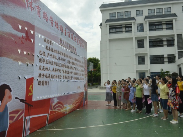 為引導全校教師崇德向善,鑄造新時代師德、師風、師魂,在9月2日的開學典禮上,學校舉行班主任任職宣誓儀式。全體正副班主任面對國旗莊嚴宣誓,繼續(xù)努力兌現“您的孩子也是我們的孩子,您親我們更愛”的社會承諾。鏗鏘的誓言使每一位教師都時刻牢記教書育人的工作職責。