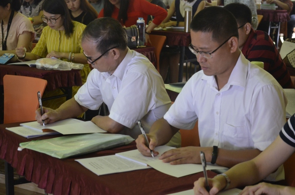 學校還創(chuàng)新性設立“校長課堂”,深入開展課堂教學研究,帶領教師們聚焦“學科核心素養(yǎng)”與學?!靶拚n程體系”中提出“愛國愛家、誠信守法、善學合作、實踐創(chuàng)新”20字學生發(fā)展核心素養(yǎng),構建充滿智慧與活力的高效課堂,以提高學生的學習興趣,增強學生的思辨能力,發(fā)展學生的綜合能力;特別加強對新學期全面投入使用的部編版語文、道德與法治教材的新理念及教學策略探究?!靶iL課堂”由校長親自或邀請名家名師到校指導,通過“進課堂”、“上講臺”的形式對老師們進行教育教學的專業(yè)指導,使老師們更準確地把握教學重難點和學科考查方向。新學期教師大會的召開明確了目標、鼓舞了人心,更為新學期的戰(zhàn)斗吹響了號角,激發(fā)了全體教師的工作熱情。
