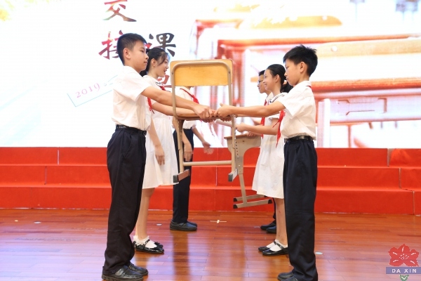 接下來,馮冠祥副校長、梁鐘添副校長、杜少君副校長為全體畢業(yè)生頒發(fā)了滿含祝福的畢業(yè)賀信,并一一送上溫馨的祝福。孩子們懷揣沉甸甸的畢業(yè)賀信臉上寫滿幸福,一時間場面感人。稍后的交接課桌椅環(huán)節(jié)中,畢業(yè)生代表將一套整潔的課桌椅與其他學具交付低年級學弟學妹,同學們在這一極富傳統(tǒng)與象征意義的儀式中體會到了傳承,體會到了責任。