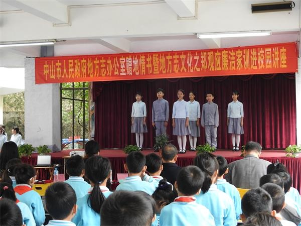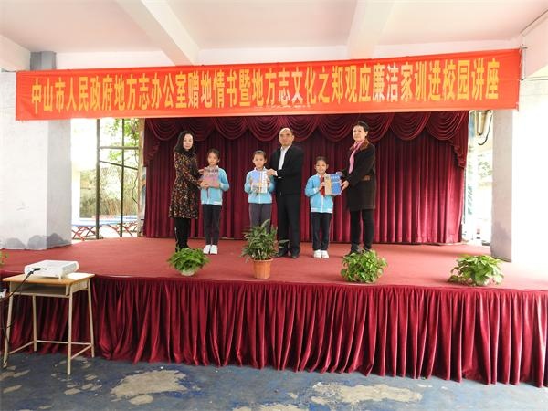 2018年11月28日上午,中山市人民政府地方志辦公室在博愛小學(xué)舉行中山地方志辦公室地情書贈(zèng)送儀式暨地方志文化之鄭觀應(yīng)廉潔家訓(xùn)進(jìn)學(xué)校普及講座,中山市地方志辦,市鄭觀應(yīng)文化學(xué)會(huì)長(zhǎng)吳冉彬、副會(huì)長(zhǎng)匡和平,副秘書長(zhǎng)羅淑怡等領(lǐng)導(dǎo)出席此活動(dòng)。