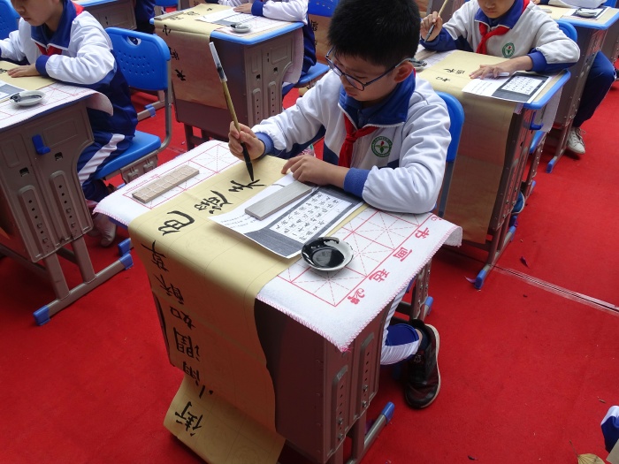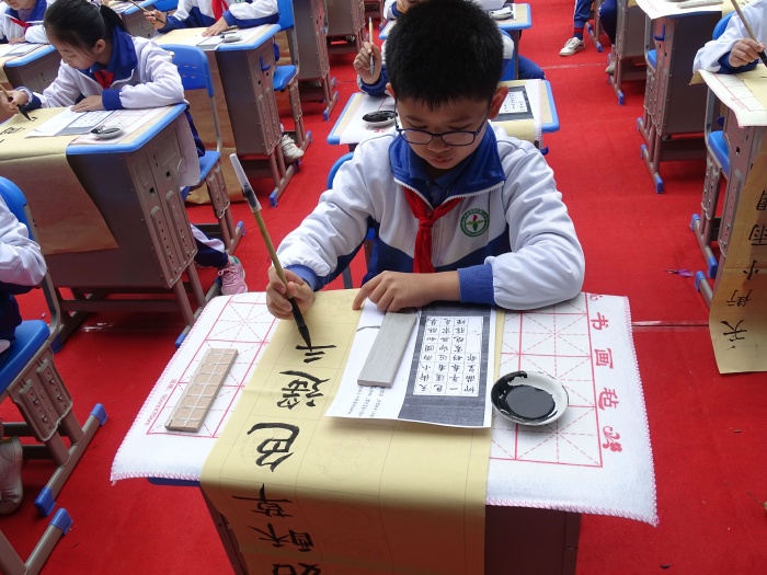 與此同時,學校小操場舉行二、五年級硬筆、軟筆書法及繪畫展示;五、六年級在大操場開展數學嘉年華活動等。學生在豐富、有趣的活動收獲學習的愉悅,展現出二小勇于創(chuàng)新的精神以及對培養(yǎng)“八有陽光少年”的堅定信念。