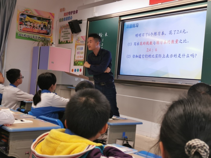 張立超老師巡視校園整體教學情況后,聆聽了六(2)班莫與談老師執(zhí)教的一節(jié)數學課《比的意義》。莫老師在充分做好學生前測的基礎上,以SOLO分類理論指導備課,制定了適宜的教學目標,精心設計了教學過程,整節(jié)課思路清晰,學生積極性高,課堂生成亮點紛呈,突出學生數學思維能力的發(fā)展。